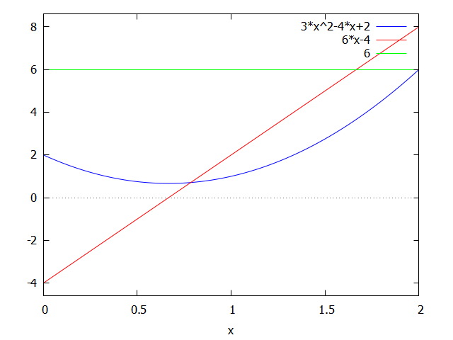 (%i6) plot2d([f(x),fdf,sdf],[x,0,2]);